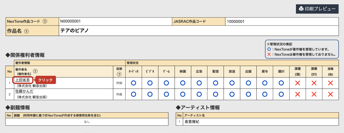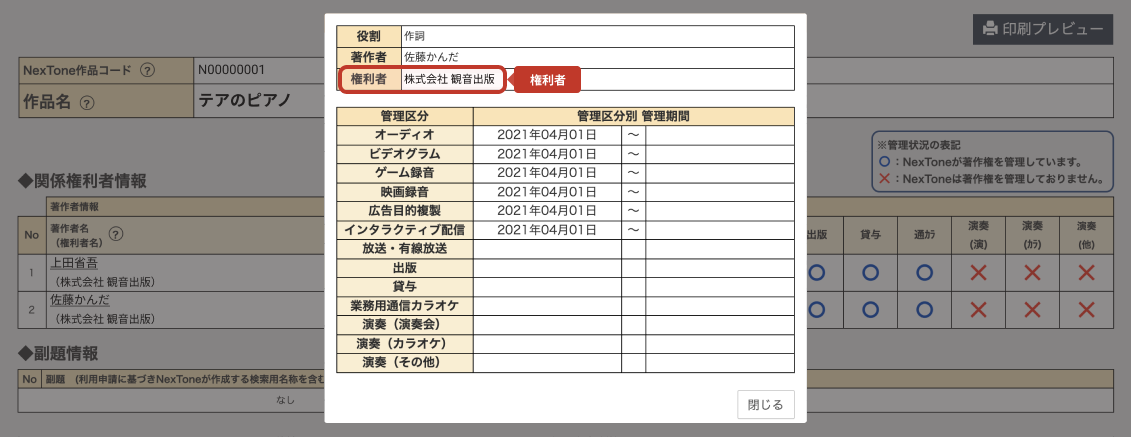著作権管理状況の確認手順(NexTone)