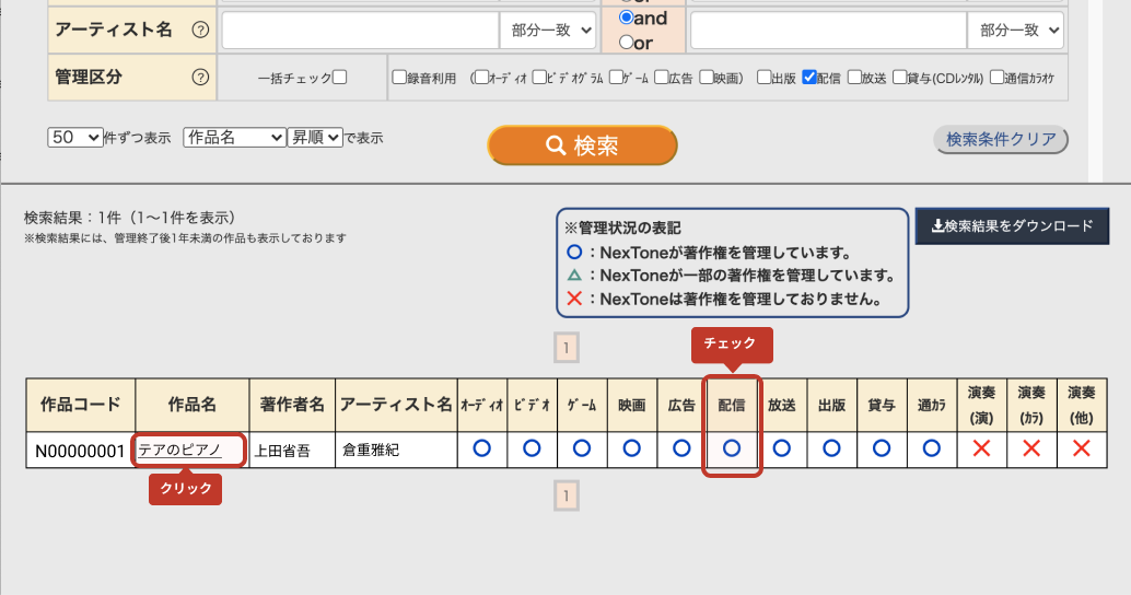 著作権管理状況の確認方法(NexTone)